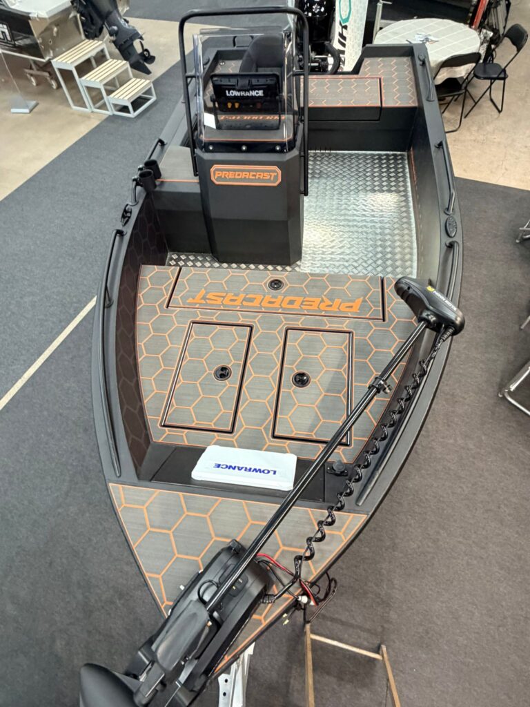At 1.9 meters wide, the boat is among the widest in its class, making it exceptionally stable. This ensures a calm and safe environment even when multiple anglers are moving around the boat simultaneously. This stability is further enhanced by the innovatively positioned steering console. By placing it 30 cm from the side, the center of gravity is optimally shifted closer to the boat’s centerline.